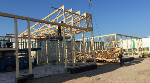 Errichtung von zwei Lagerhallen in Holzständerbauweise mit Fertigbindern.